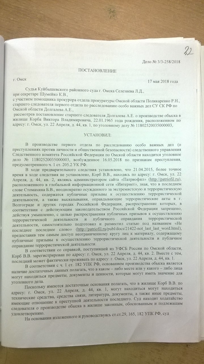 Следствие по делу «ФСБ против Виктора Корба» началось с грубого нарушения законности путем проведения десятичасового обыска в жилище, не санкционированного «судом», и продолжается в том же духе, но это никого не волнует 😞