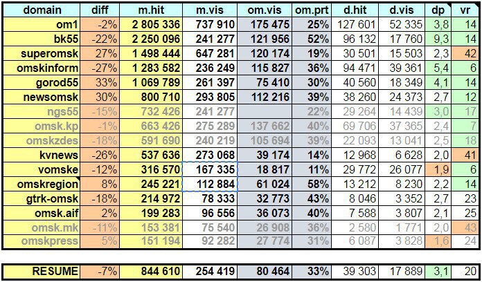 ​​Рейтинг интернет-СМИ Омска в августе 2018 года