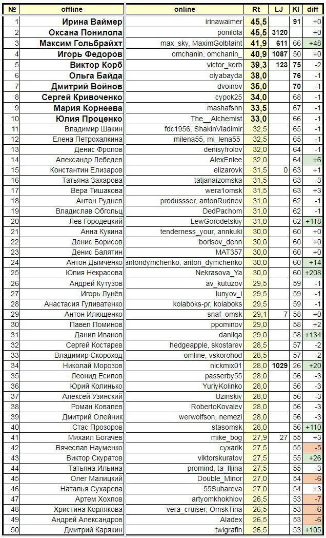 Рейтинг АРИ влиятельности блогеров Омска. TOP-50. 2018. АВГУСТ