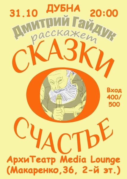 31 октября в наших уютных стенах вас ждут самые позитивные истории из коллекции легендарного Дмитрия Гайдука. В исполнении самого автора!
