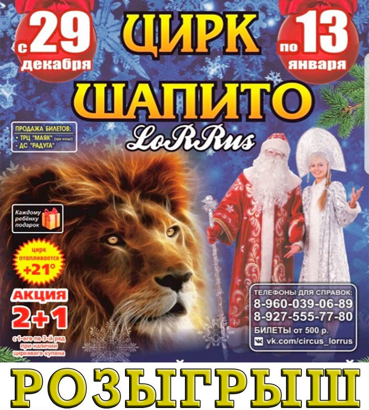 Напоминаем, 10 участников нашей группы могут выиграть билет на новогоднее цирковое представление!