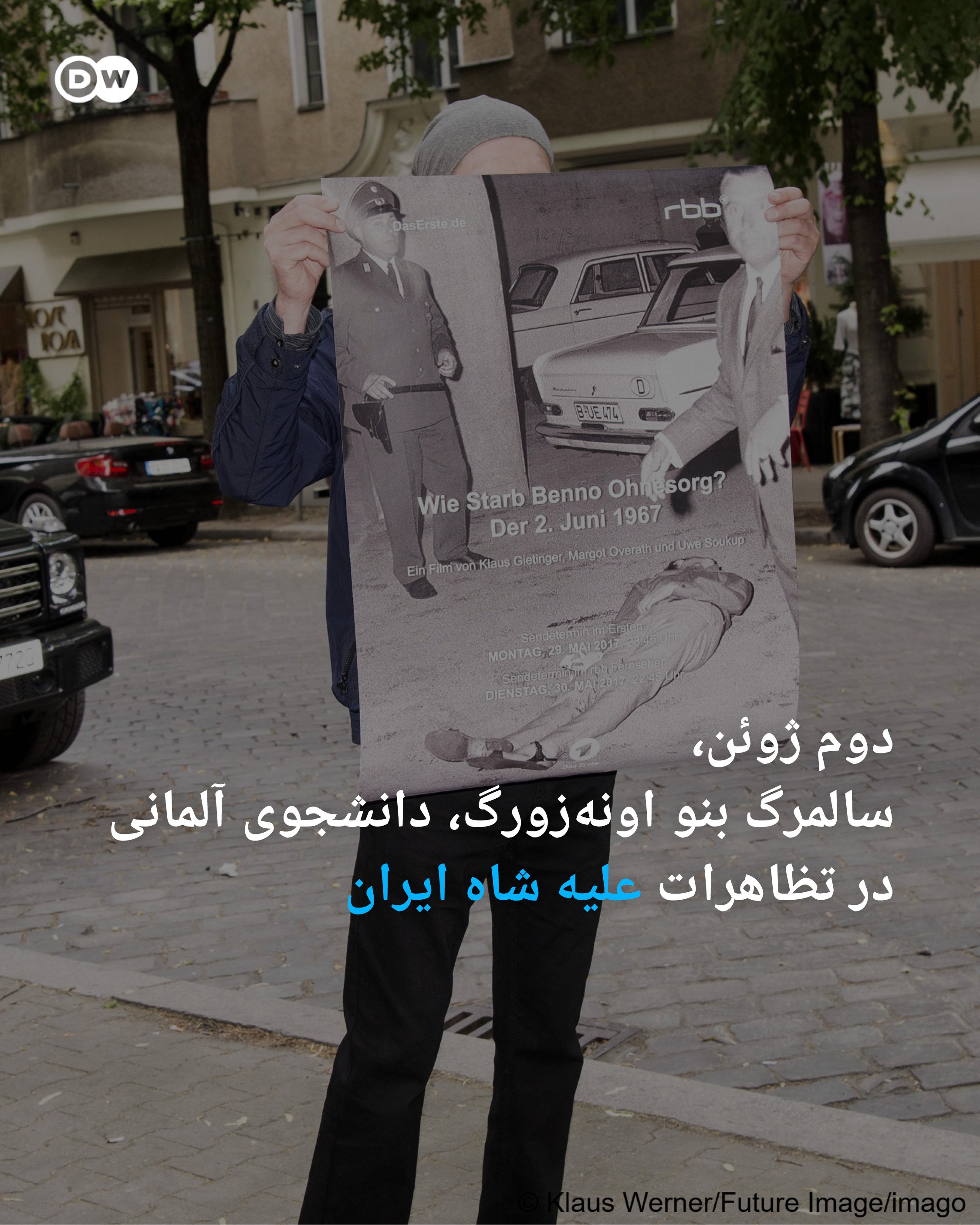 اواخر بهار سال ۱۹۶۷ شاه ایران برای دیداری رسمی به آلمان آمده بود. در روز ۲ ژوئن که محمدرضا شاه به شهرداری برلین میرفت تا نامش در کتاب زرین شهر ثبت شود، تظاهراتی علیه او برگزار شد.