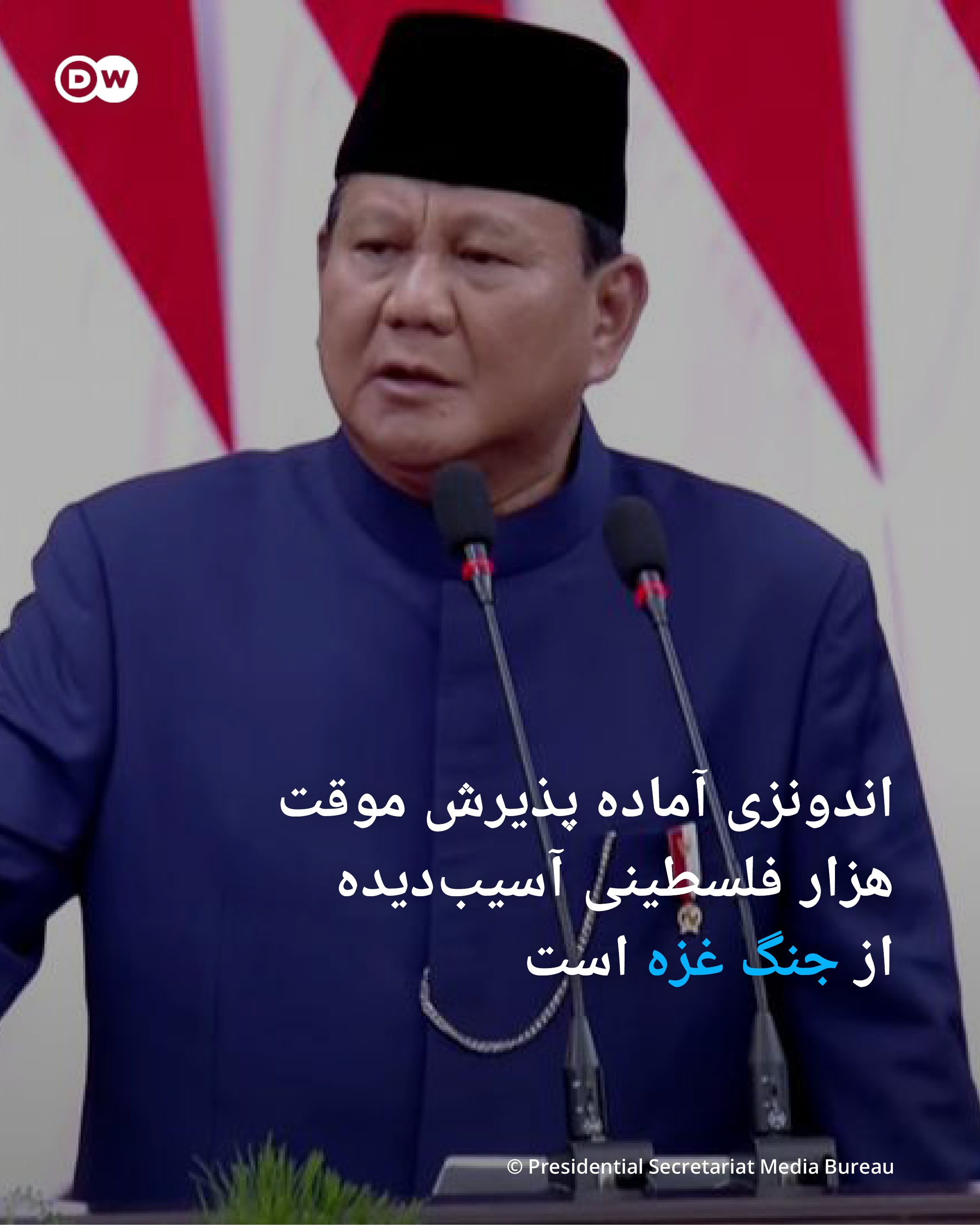 به گفته پرابوو سوبیانتو، رئیس جمهوری اندونزی، این کشور قصد دارد فلسطینیان آسیبدیده از جنگ در نوار غزه را به شکل موقت بپذیرد. او روز چهارشنبه ۹ آوریل (۲۰ فروردین) گفت: «ما آمادهایم مجروحان، آسیبدیدگان روانی و کودکان بیسرپرست را به کشور منتقل کنیم». پرابوو سوبیانتو افزود، این افراد میتوانند تا بهبودی کامل از جراحتها و آسیبهای خود و امنیت اوضاع در نوار غزه برای بازگشت، در اندونزی بمانند.