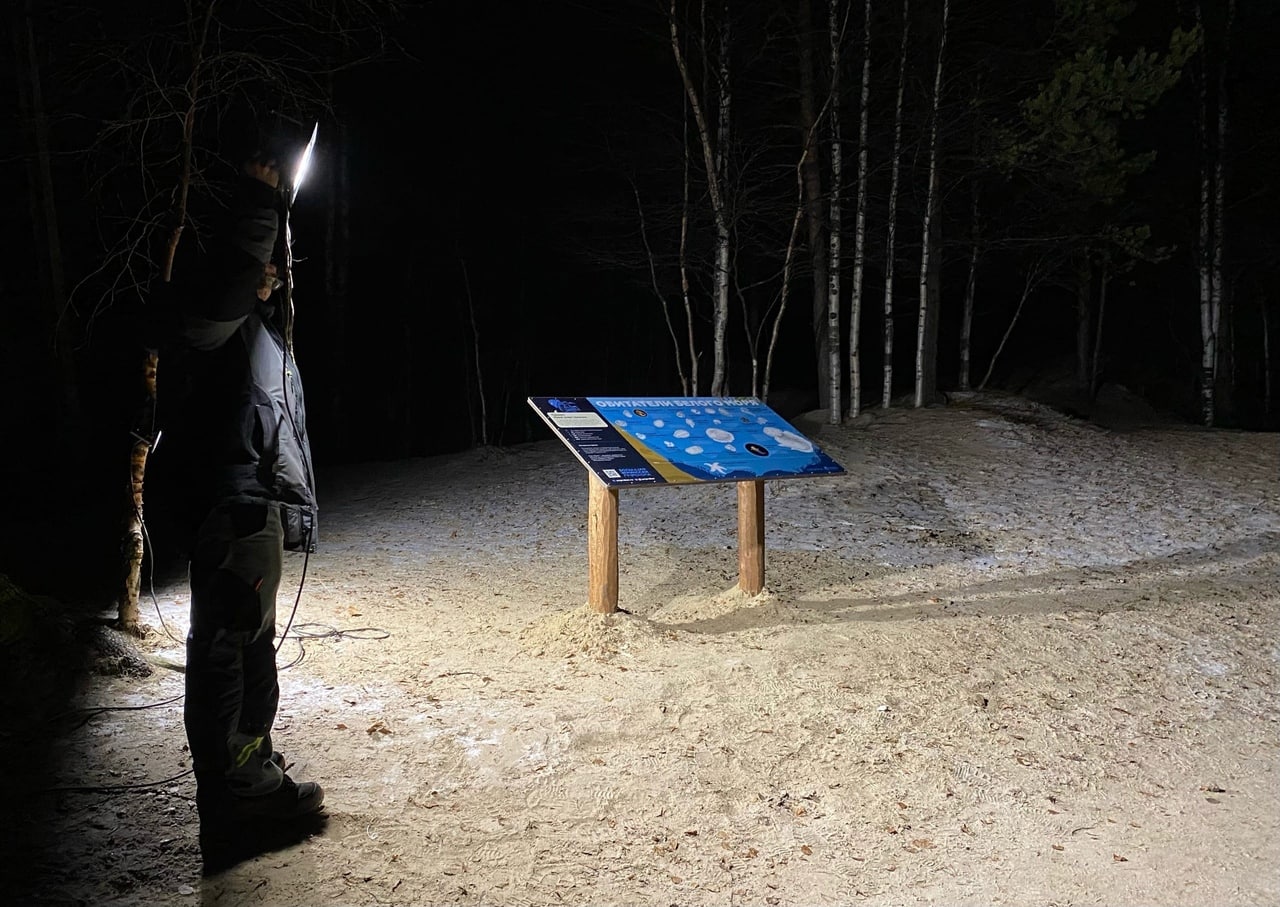 В рамках семейного эко-маршрута «Большая Ягринская тропа» силами «Сборной Тайболы» и ОЗЯБ был смонтирован первый «ночной» стенд на особо охраняемой природной территории Ягринский бор🐿 Северодвинска (Архангельская область).