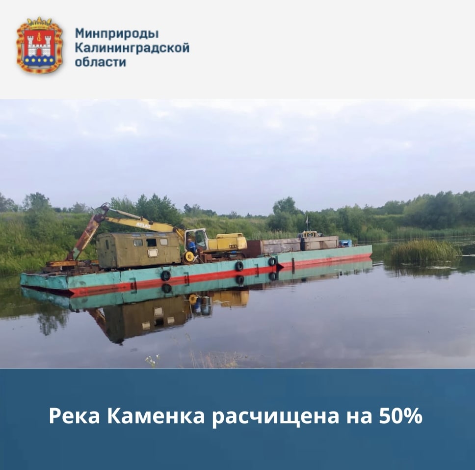 Как сообщается на сайте правительства региона, подрядчиком сейчас расчищено 8100 метров русла реки Каменки из 15300 в Полесском городском округе.