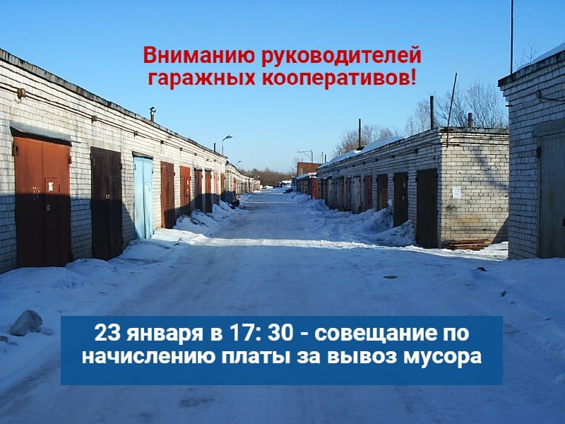 23 января в 17:30 в администрации Архангельска пл. Ленина, 5, актовый зал, состоится совещание при заместителе главы по городскому хозяйству Владиславе Шевцове. На повестке обсуждения - вопрос начисления оплаты за услугу по обращению с ТКО для гаражно-строительных кооперативов.