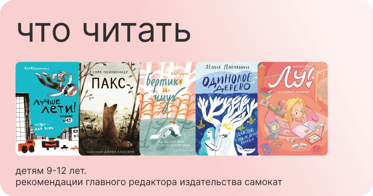 ​​Что читать детям 9-12 лет? В этом выпуске специальной рубрики проекта "Family tree", главный редактор издательства Самокат Ирина Балахонова рассказывает про книги о дружбе, верности и любви, которые принесут ребенку радость чтения