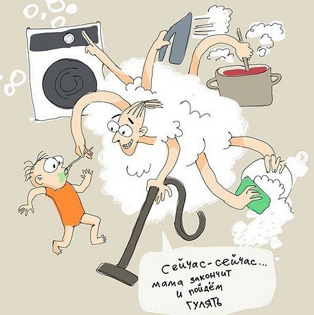 Каждый из нас выбирает свой способ задолбаться - кто об работу, кто об уборку, кто об детей. И лечим мы себя, конечно, сказками, что никто кроме меня так не поработает мою работу, так не уберет и так не воспитает детей.