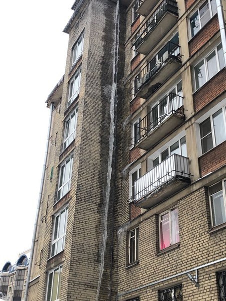 ​​Рекордный размер сосульки фиксируют горожане в Московском районе Петербурга. Наледь растянулась на весь восьмиэтажный дом — от крыши почти до первого этажа.