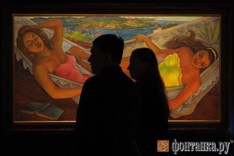 В Садовом вестибюле Михайловского дворца открылась выставка Архипа Куинджи. Присутствует та самая украденная из Третьяковки картина «Ай-Петри. Крым». Охраняют ее так, как будто она сделана из бриллиантов.