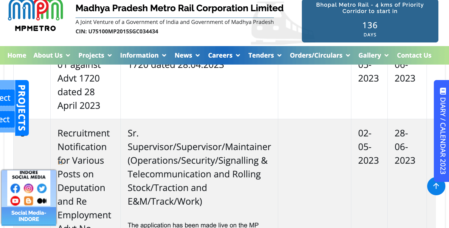 *Notification PDF & More detail: https://indianrailwayrecruitment.in/mpmrcl-recruitment-2023-notification/