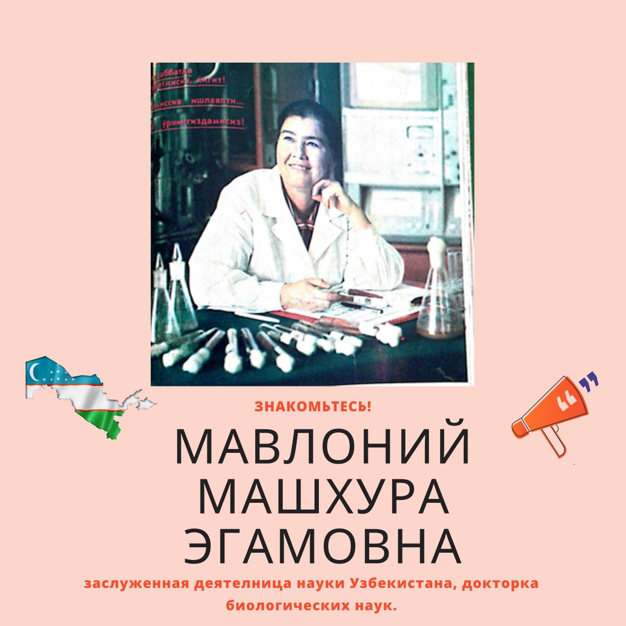 Мавлоний Машхура Эгамовна - микробиолог, академик АН Узбекистана, заслуженный деятель науки Узбекистана, доктор биологических наук.