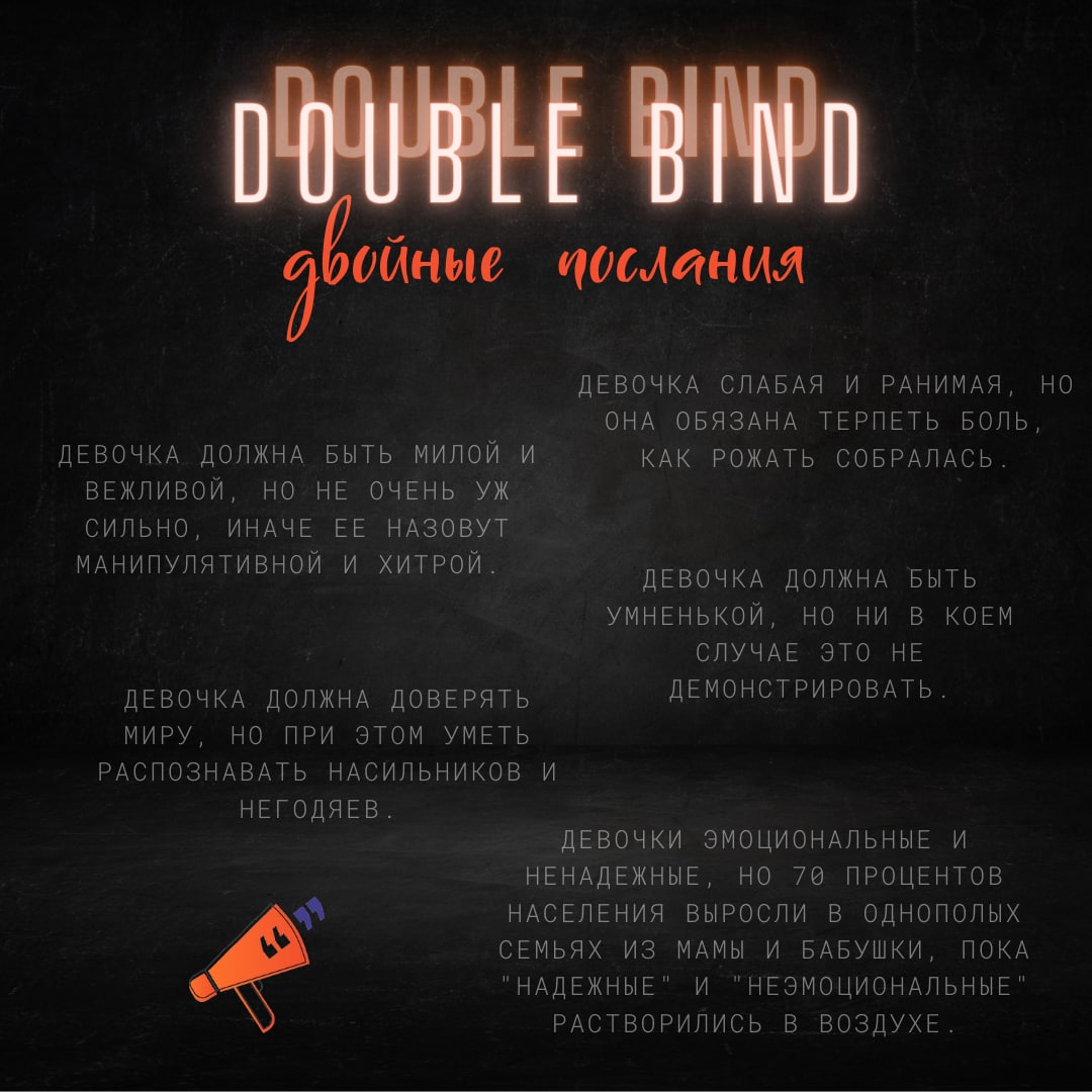 Когда от женщины требуют, чтобы она с одной стороны сразу же ушла от абьюзера. а с другой стороны простила его и поняла, это тоже двойные послания.