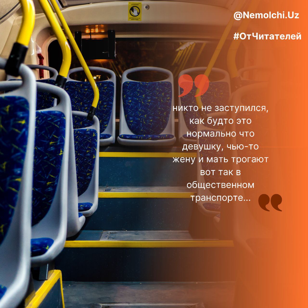 Поняла, что что-то не так благодаря сильно недовольными сидящим девочкам. Они настолько громко и бурно что-то обсуждали и посматривали на меня, что я выключила музыку в наушниках и услышала: «Она не замечает, не смотрит в эту сторону. Я сейчас встану, и она сядет». Одна из них встала и сказала, чтобы я села на её место. Ей нужно было выходить на станции «Мирзо Улугбек», затем на следующей станции вышел тот парень. Потом я спросила у её подруги, что случилось, на что она ответила, что тот парень до меня облапал ещё 2 девочек в платьях и что пытался потрогать и меня, возможно, даже и трогал, но я это не почувствовала, думала, наверное, что это точно не рука, а сумка.