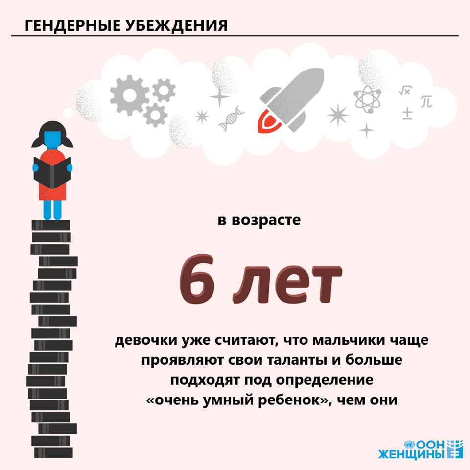По данным UN Women девочки уже в 6 лет считают, что мальчики талантливее и умнее, чем они.