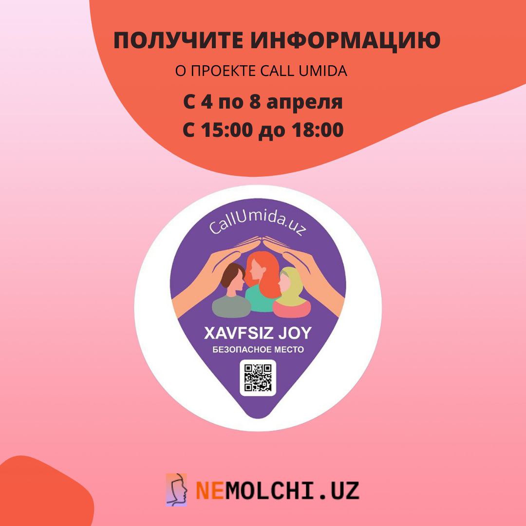В указанное время на точках будут работать волонтеры инициативы CallUmida.uz, которые смогут ответить на все интересующие вас вопросы о проекте.