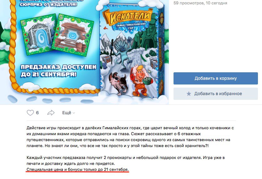Привет! Мониторя просторы интернета (конечно же про настольные игры), наткнулся на такую новость от молодой компании MVP Games. Сразу скажу, что для меня данное событие получилось нелогичным. Ребята выпускают 2 новые, собственные игры и запускают предзаказ на них, при этом не имея каких либо обзоров, летсплеев и т.п.д. Ну да ладно, цена на предзаказе естественно ниже, чем будет после. Нелогичность проявляется через одно НО. Предзаказ идёт N-ое количество времени и заканчивается ровно за 1 день до начала Игрокона. А на фестивале начнутся официальные продажи и естественно по другой цене. Не кажется ли Вам, что игры скрыты завесой тайны и ребята пытаются срубить больше денег на предзаказе, при этом не показывая свою игру? Мол за меньшие деньги получаешь кота в мешке, а если будешь на Игроконе, то изучишь, что за игры и приобретешь за более дорогую стоимоть. Сообщество Geek Media обозначило, что обзор будет только после Игрокона. Хмм... Я пожалуй откажусь. А Вы, что думаете?