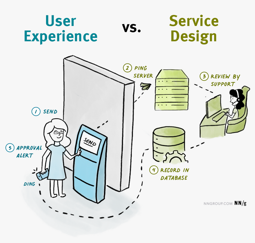 UX-дизайн сосредоточен на том, с чем сталкивается конечный пользователь, тогда как сервис-дизайн ориентирован на то, как этот пользовательский опыт создается внутри.