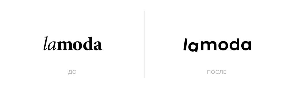 «Идея нового лого и стиля в целом — в том, как клиент Lamoda относится к современной моде: без подобострастия и, вероятно, с иронией (клиенты Lamoda в основном не сникерхэды и не покупатели vetements); но — с уважением к наследию той самой Моды с большой буквы. Мы не работали с прямой метафорой, но в некотором смысле эта споткнувшаяся la — метафора на уровне формы: она и преклоняется, и даёт хороший пинок. И, разумеется, она отдаёт дань уважения наследию самого бренда Ламода, курсиву в la.
