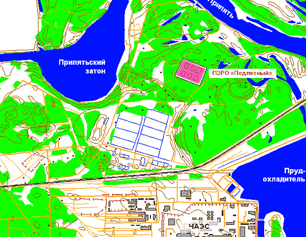 ПЗРО Подлесный разместили на расстоянии 1,5 км севернее Чернобыльской АЭС на месте бывшего одноименного хутора. Место размещения выбрано неудачно – высокорадиоактивные отходы хранятся практически на берегу водоёма (Припятский затон), и всего в километре от реки Припять. ПЗРО Подлесный сооружён практически в пойме реки, что может повлечь серьезные экологические проблемы в случае потери герметичности контейнеров и бетонных ёмкостей с радиоактивными отходами.