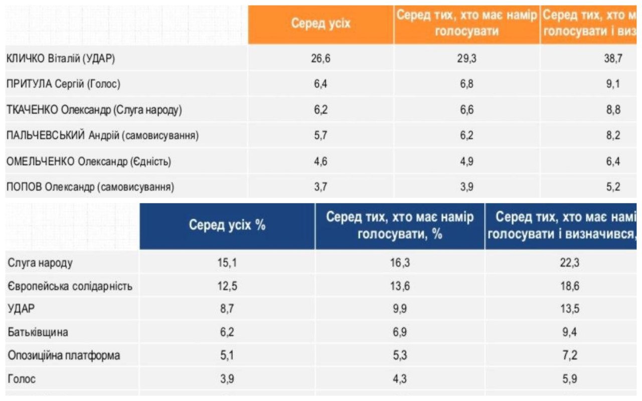 ⚡️"Рейтинг": поддержка Кличко в Киеве в четыре раза выше, чем у вероятных соперников.