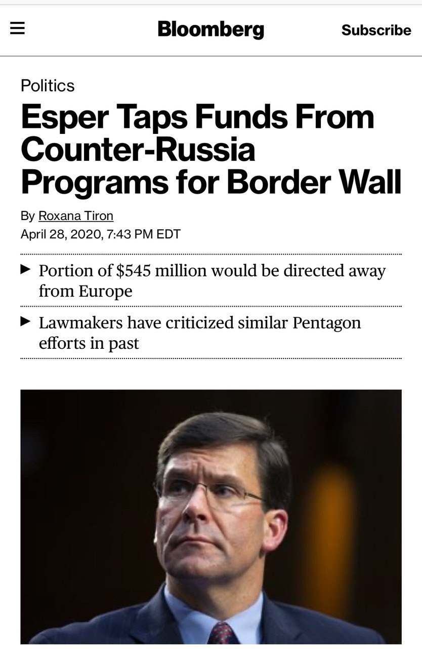 ⚡️Минобороны США приостановит финансирование ряда проектов по сдерживанию России и вложит эти деньги на строительство стены на границе с Мексикой.
