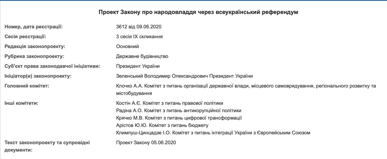 Законопроект 9 июня получен Верховной Радой и передан на рассмотрение руководству.