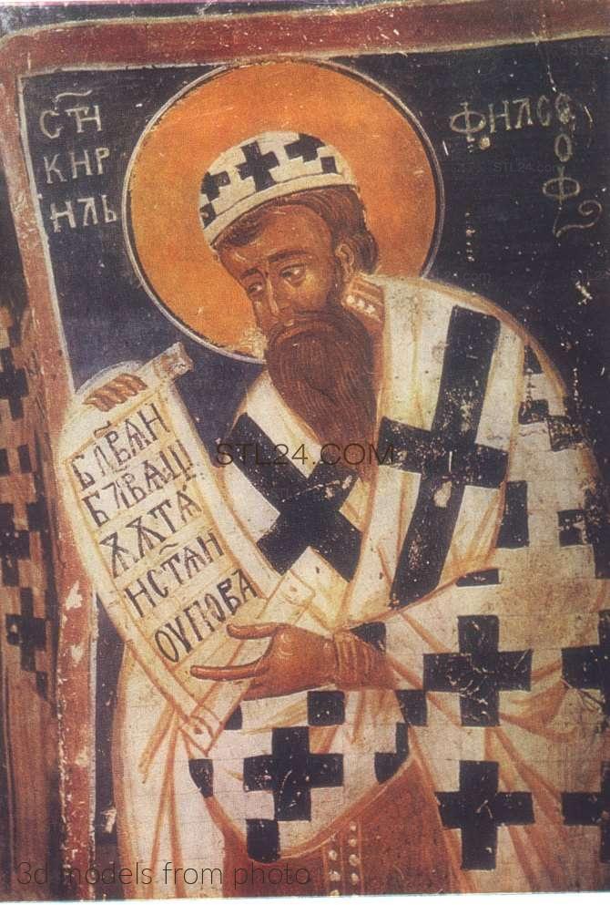 Святой равноапостольный Кирилл, учитель словенский (до принятия схимы – Константин) и старший брат его Мефодий (память 6 апреля) по происхождению славяне, родились в Македонии, в городе Солуни. Святой Кирилл получил блестящее образование, с 14-летнего возраста воспитываясь с сыном императора. Он рано принял сан пресвитера. По возвращении в Константинополь состоял библиотекарем соборной церкви и преподавателем философии. Святой Кирилл с успехом вел прения с еретиками иконоборцами и с магометанами. Стремясь к уединению, он удалился на гору Олимп к своему старшему брату Мефодию, но уединение его продолжалось недолгое время. Оба брата были посланы в 857 году императором Михаилом в миссионерское путешествие для проповеди христианства у хозар. По дороге они останавливались в Херсоне и обрели там мощи священномученика Климента, Папы Римского. Прибыв к хозарам, святые братья беседовали с ними о христианской вере. Убежденный проповедью святого Кирилла хозарский князь и с ним весь народ приняли христианство. Благодарный князь хотел наградить проповедников богатыми дарами, но они отказались от этого и просили князя отпустить с ними на родину всех греческих пленников. Святой Кирилл вернулся в Константинополь с 200 отпущенными пленниками.