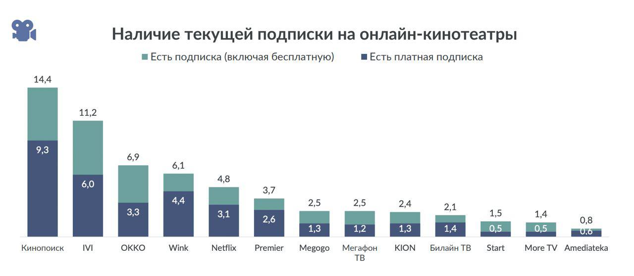 — В защиту Кинопоиска добавлю, что ровно с тем же успехом можно было бы предъявлять претензии OKKO, Wink, Мегафон ТВ, Kion и Билайн ТВ. Однако кажется, что считать подобные рейтинги отдельно было бы правильнее: в первом собирают только сервисы экосистем, во втором независимые сервисы.