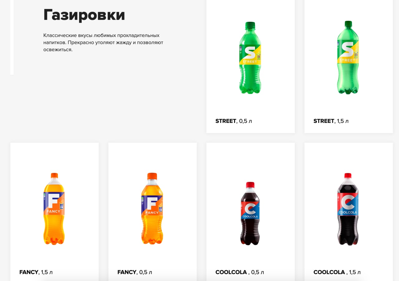 Надо ли говорить, что этикетки при этом косвенно похожи на оригинальные? Думаю нет. Цвета Fancy и Street почти повторяют айдентику Fanta и Sprite, а вот дизайн CoolCola удивил: в него как будто добавили нотки Pepsi.