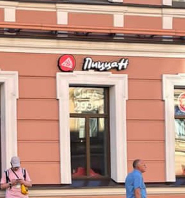 Чтобы вы понимали, так теперь выглядит логотип ресторанов сети Pizza Hut в Санкт-Петербурге. Да да, они теперь называются «Пицца H». Логотип потерял фирменные детали — красный цвет и знак в виде крыши печи.