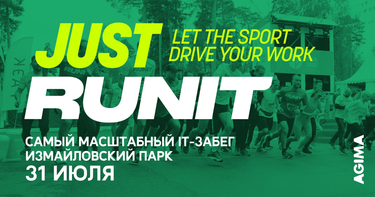 Наши друзья из AGIMA уже третий раз проводят забег RUNIT. В этом году мероприятие пройдет 31 июля в Измайловском парке в Москве: соберется 2000 разработчиков, интернет-маркетологов, проджектов, продактов и тех, кто делает мир Digital чуточку лучше.