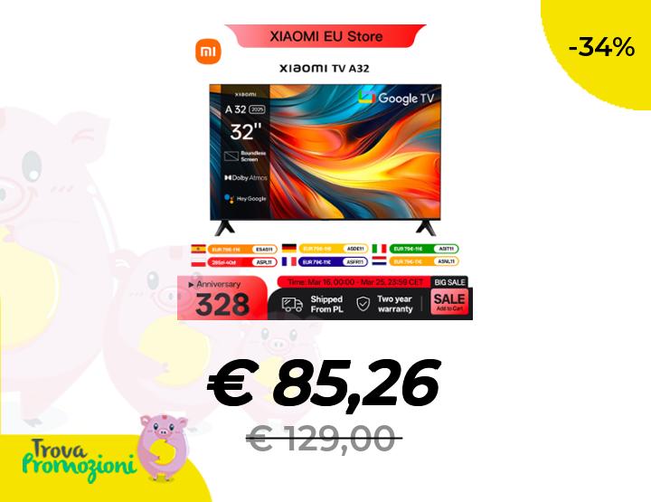 ๐๐ผ Xiaomi TV A 32, dimensioni compatte con schermo colorato, suono dinamico con audio Dolby โข , DTS-X e DTS Virtuale:X, Fini metallici di fascia alta