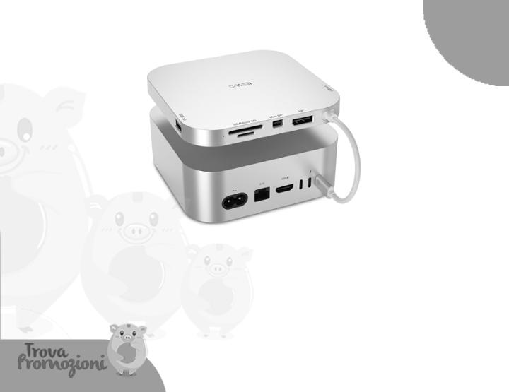 ๐๐ผ JESWO Docking station per Mac Mini M4/M4 Pro 2024, Hub USB C con porta DP 4K@60Hz & miniDP, 5Gbps Porta USB 3.0, Lettori di schede SD/TF