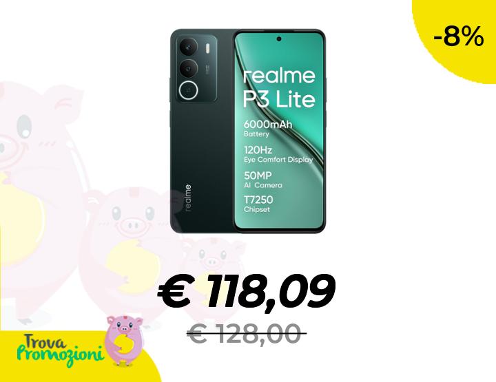 ๐๐ผ realme P3 lite, Smartphone,Verde, 8+256 GB, display Eye Comfort da 120 Hz, batteria da 6000 mAh, chipset T7250, fotocamera AI da 50 MP, ricarica da 15 W (senza adattatore)
