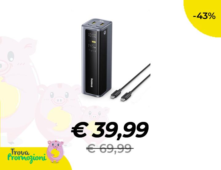 ๐๐ผ Baseus EnerGeek Powerbank 145W 20800mAh, Batteria Portatile con 2X USB-C PD 3.0 100W Max Ricarica Rapida, Display Digitale, Compatible with MacBook Pro, Dell, HP, SteamDeck, iPhone 16/15/14, Samsung