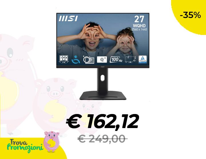 ๐๐ผ MSI PRO MP275QPG Monitor da 27" WQHD โ Pannello IPS 2560ร1440, 100 Hz, Eye-Friendly, VESA Mount, Supporto Display Kit, Regolabile 4 Vie, HDMI 2.0b & DisplayPort 1.2a