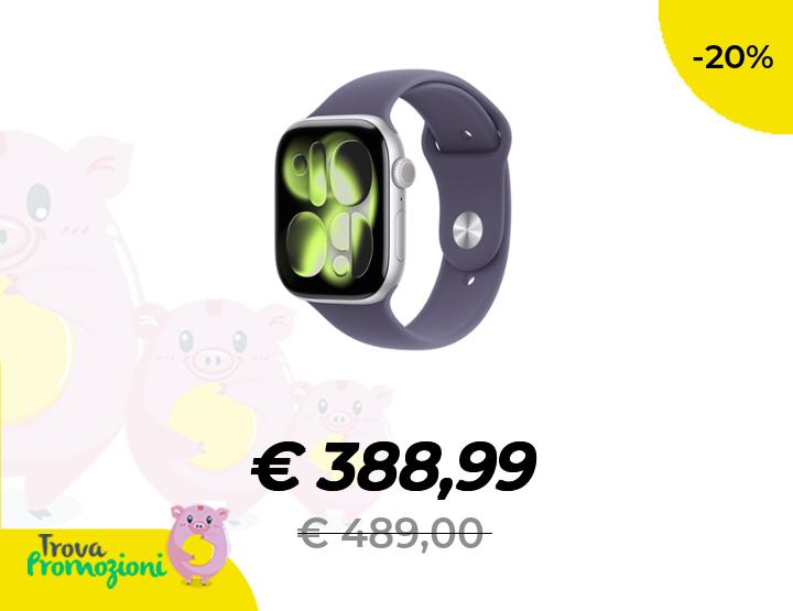 ๐๐ผ Apple Watch Series 11 GPS, Cassa 46 mm in alluminio color argento con Cinturino Sport viola nebbia - S/M