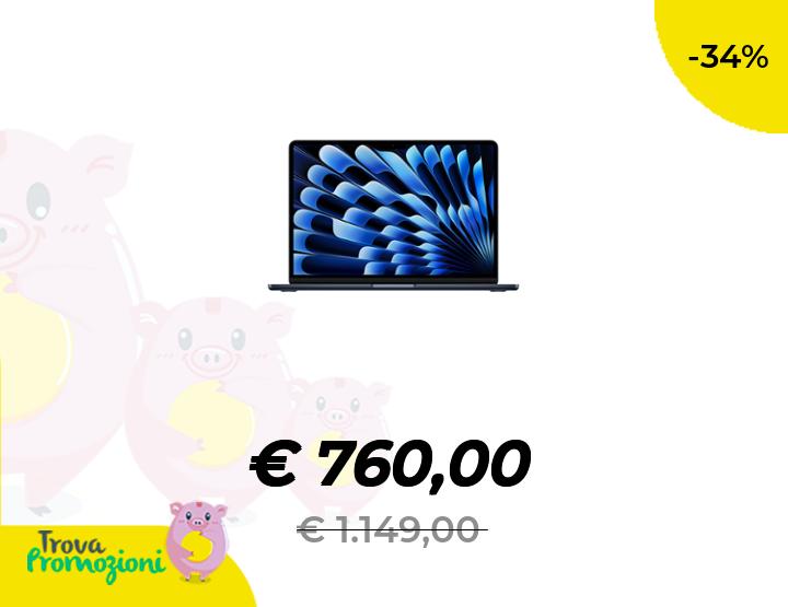 ๐๐ผ Apple Portatile MacBook Air 13'' con chip M4 (2025): progettato per Apple Intelligence, display Liquid Retina da 13,6'', 24GB di memoria unificata, 512GB di archiviazione SSD, Touch ID; Mezzanotte