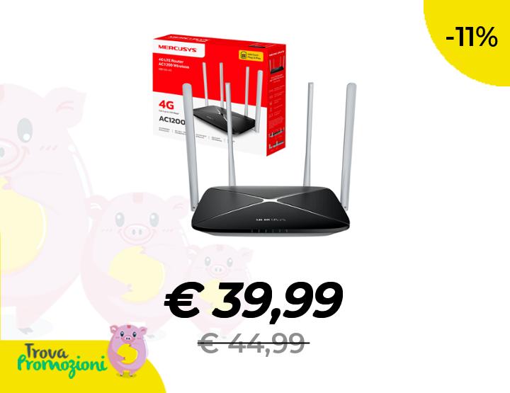 ๐๐ผ Mercusys MB135-4G Router WiFi con Sim, 4G LTE Cat4 AC1200Mbps, 4 Antenne Ad Alto Guadagno, 1 Porta LAN/WAN + 3 Porte LAN, OpenVPN, PPTP Server, WAN Backup, Parental/LED Control, SMS, APP, Plug & Play