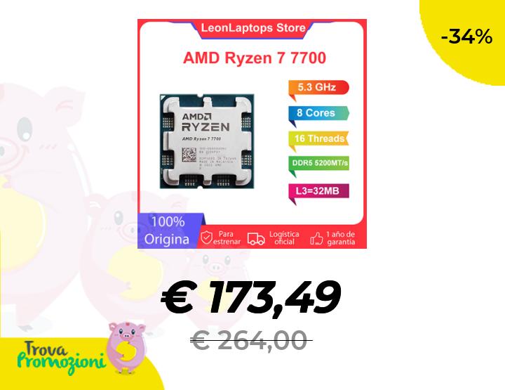 ๐๐ผ Processore Amd Ryzen 7 7700 8 Core/16 Zen 4 40 Mb L332 Mb Cache 65 W Tdp fino a 5,3 Ghz Presa di frequenza boost Amd 5 Ddr5 e Pcie 5.0
