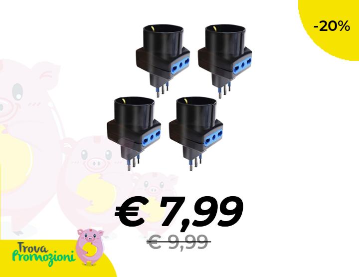 ๐๐ผ EXTRASTAR Set 4 Adattatori 3 Posti 1 Schuko + 2 Bivalenti 10/16A,Nero,Confezione da 4