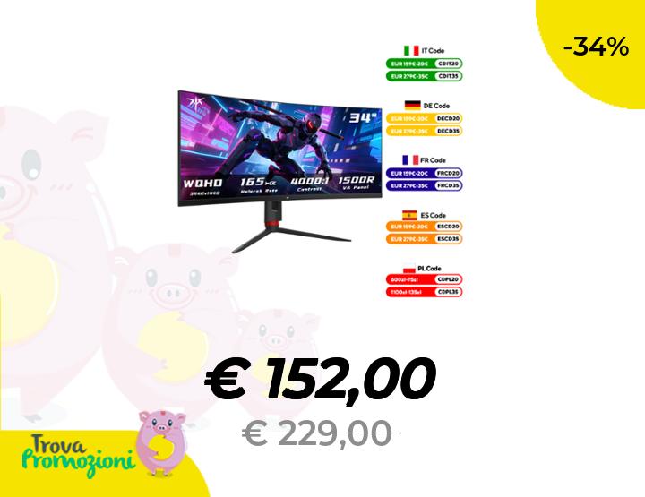 ๐๐ผ Monitor ultra ampio KTC da 34 pollici, monitor da gioco curvo 165Hz WQHD 3440X1440, monitor PC 1500R, HDR, FreeSync e G-Sync HDMI H34S18S