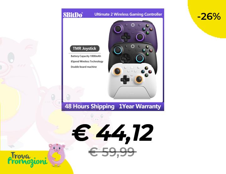 ๐๐ผ Controller wireless 8BitDo Ultimate 2, gamepad Bluetooth/USB/2.4G con joystick TMR, dock di ricarica per PC, Windows 10,11, Android