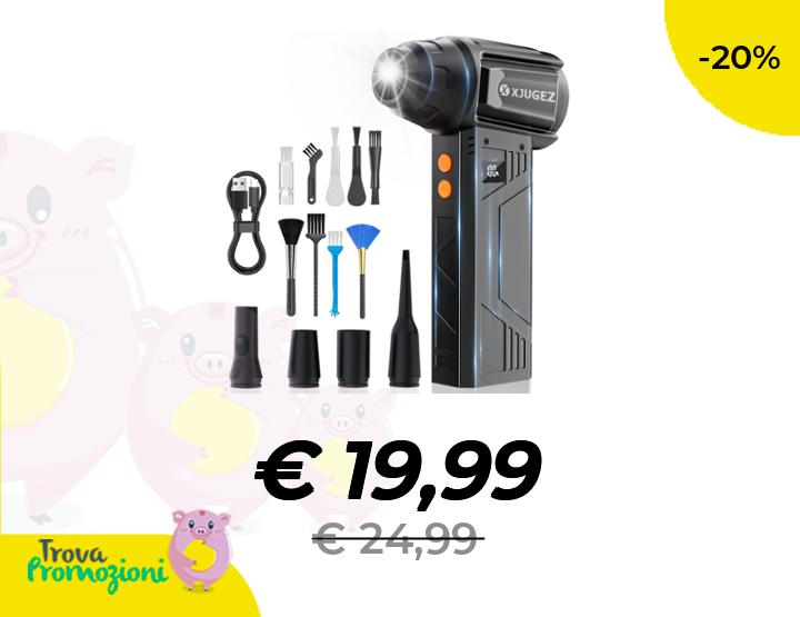 ๐๐ผ XJUGEZ Aria Compressore Elettrico Rimuovi Polvere,4 Velocitร 180000RPM Soffiatore a Batteria con 2 Luce LED&4 Ugelli,Mini Compressore Aria per Auto,Laptop,Tastiera Sostituisce Aria Compressa Spray