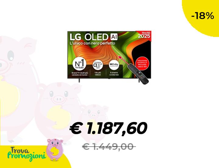 ๐๐ผ LG OLED AI B5 TV 65 pollici, Smart TV 4K, Processore ฮฑ8 Gen2, webOS con AI, Dolby Vision e Atmos, Gaming con VRR, GSYNC e FreeSync 4K@120Hz, 4 HDMI 2.1, Alexa, OLED65B56LA 2025