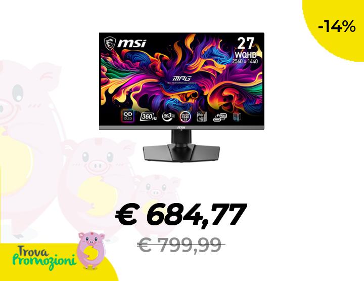 ๐๐ผ MSI MPG 271QRX QD-OLED 27" WQHD Gaming Monitor - Pannello OLED Quantum Dot 2560 x 1440, 360Hz / 0,03ms, 99% DCI-P3, ฮEโค2, DisplayHDR True Black 400, KVM, RGB - DP 1.4a, HDMI 2.1, USB Type-C