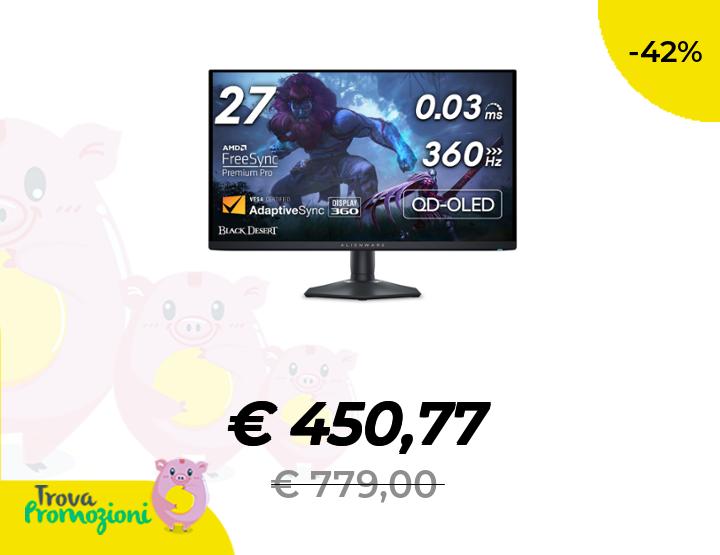 ๐๐ผ Alienware AW2725DF 27" QHD (2560x1440) Monitor Gaming, 360Hz, QD OLED, 0.03ms, AMD FreeSync Premium Pro, 99.3% DCI-P3, HDR400, USB-C, 2x DisplayPort, HDMI, 4x USB, 3 Anni di Garanzia