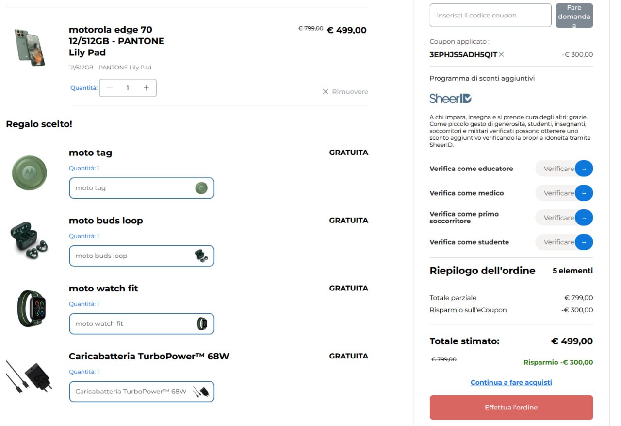 Bomba lancio Motorola su sito ufficiale: Il Motorola EDGE 70 super sottile con 4 omaggi a 499โฌ