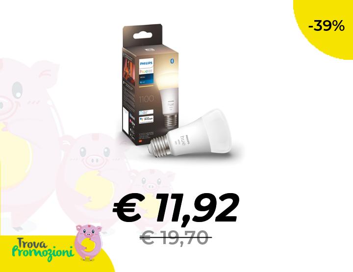 ๐๐ผ Philips Hue White Lampadina Smart LED Smart, Bluetooh, E27, 9.5W, Dimmerabile, 1 Luce Bianca Calda, Bianco
